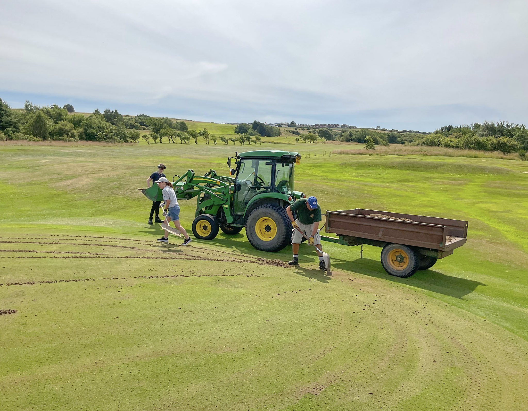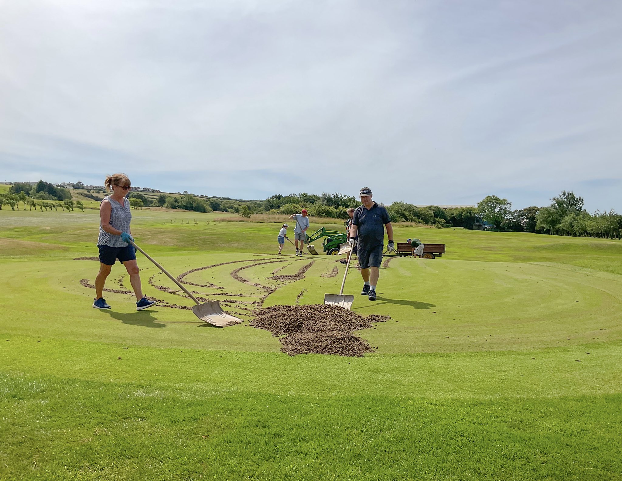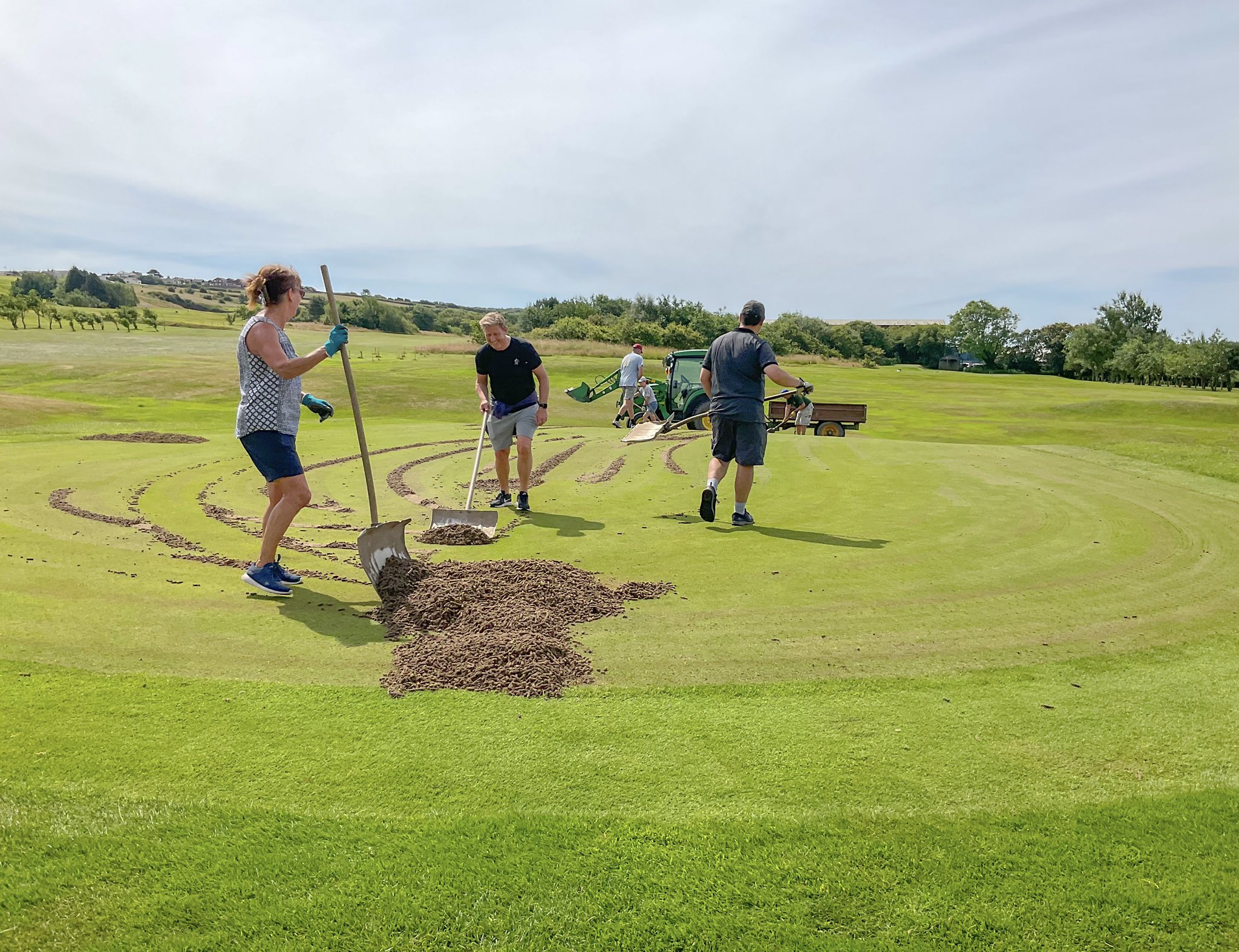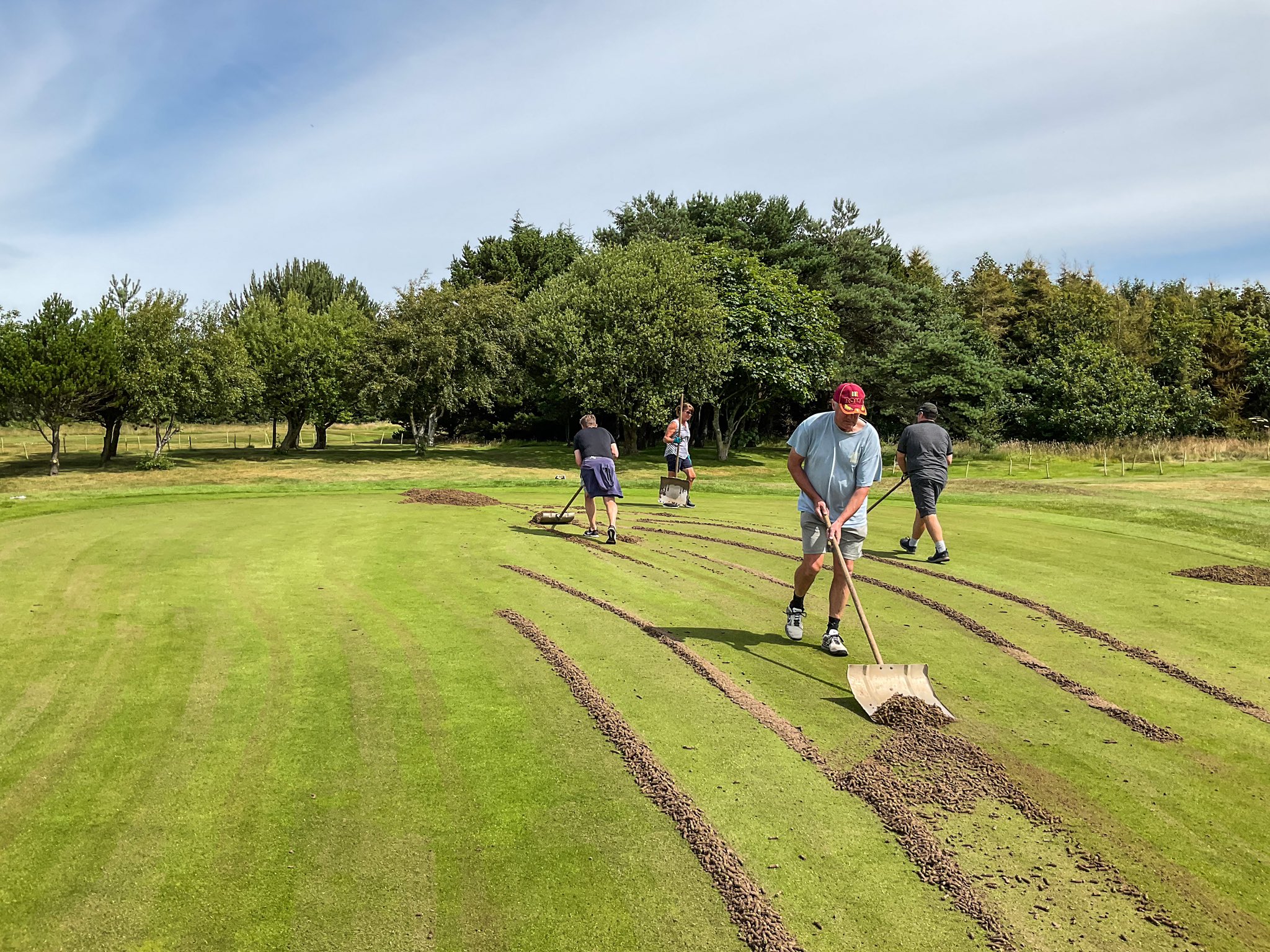 It’s course maintenance week and today the Greenkeepers have lead a group of hard working volunteers in hollow coring the Greens.